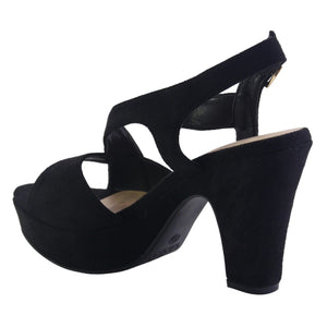 Sandalia Mujer Moda Cosimo-13 Color Negro de Capellada Textil con Forro textil y Planta de Goma su Taco mide 10 cm. Aprox.
