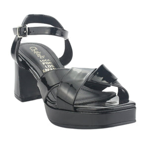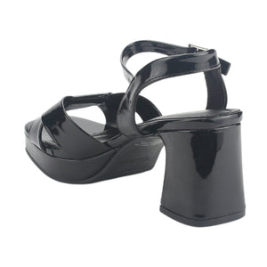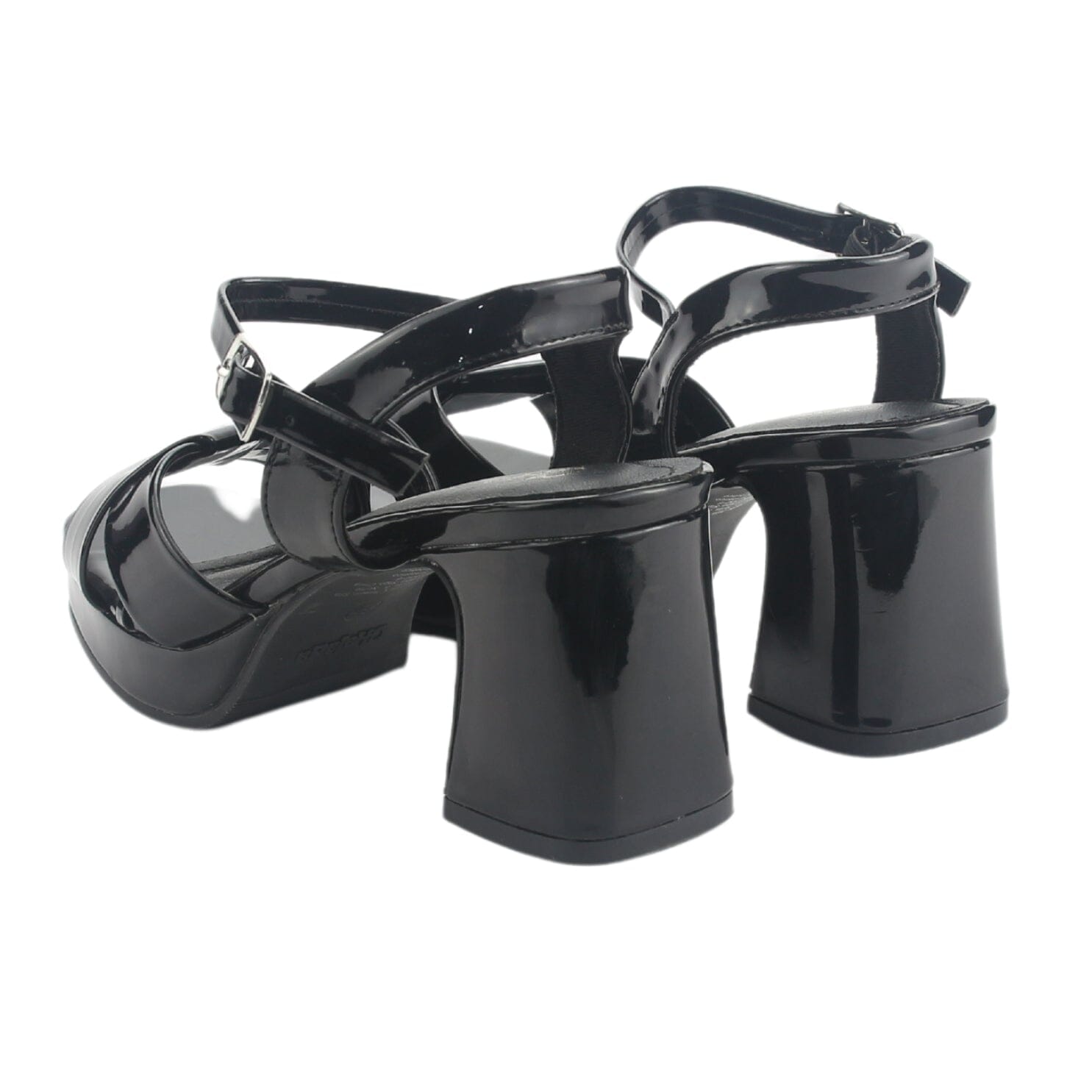 Sandalia Mujer Casual Flora-1 Color Negro de Capellada Sintetico con Forro Sintetico y Planta de Goma, su Taco mide 7 cm aprox, su Plataforma 2 cm aprox y su Tipo de Cierre es Hebilla