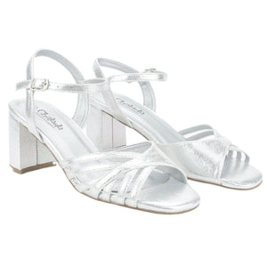 Sandalia Mujer Casual Foly-2 Color Plateado de Capellada Sintetico con Forro Sintetico y Planta de Goma, su Taco mide 7 cm. Aprox