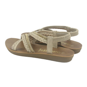 Sandalia Mujer Plano Quanta-15 Color Dorado de Capellada Sintetico con Forro Sintetico y Planta de Goma Taco 3 cm. Aprox.
