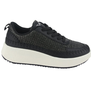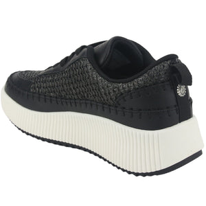 Zapatilla Mujer Urbano Iver-10 Color Negro de Capellada Textil con Forro Textil y Planta de Goma, su Plataforma 6 cm aprox y su Tipo de Cierre es Cordones