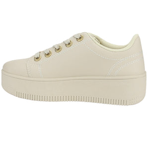 Zapatilla Mujer Urbano Metta-15 Color Beige de Capellada Sintetico con Forro Textil y Planta de Goma, su Taco mide No tiene, su Plataforma 5 cm aprox, su Caña No tiene, Contorno de pantorrilla No tiene y su Tipo de Cierre es Cordones