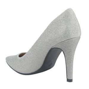 Zapato Mujer Casual Clora-64 Color Plateado de Capellada Sintetico con Forro Textil y Planta de Goma y su Taco mide 10 cm. Aprox.