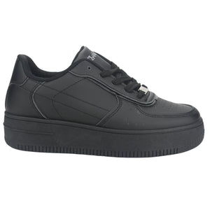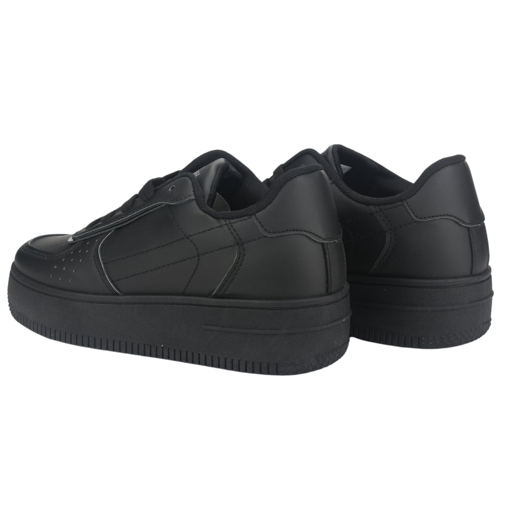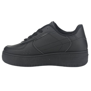 Zapatilla Mujer Urbano Joggo-7 Color Negro de Capellada Sintetico con Forro Textil y Planta de Goma, su Taco mide No tiene, su Plataforma 4 cm aprox, su Caña No tiene, Contorno de pantorrilla No tiene y su Tipo de Cierre es Cordones