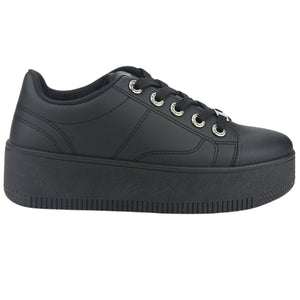 Zapatilla Mujer Urbano Metta-15 Color Negro de Capellada Sintetico con Forro Textil y Planta de Goma, su Taco mide No tiene, su Plataforma 5 cm aprox, su Caña No tiene, Contorno de pantorrilla No tiene y su Tipo de Cierre es Cordones