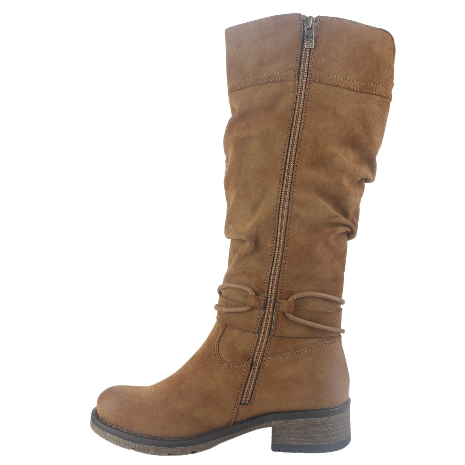 Bota Chalada Mujer Torri-30 Camel Casual de Capellada Sintetico con forro Textil y planta de Goma y su Taco mide 4 cm aprox, la altura de su caña es de 34 cm aprox, el contorno de su bota es de 38 cm aprox