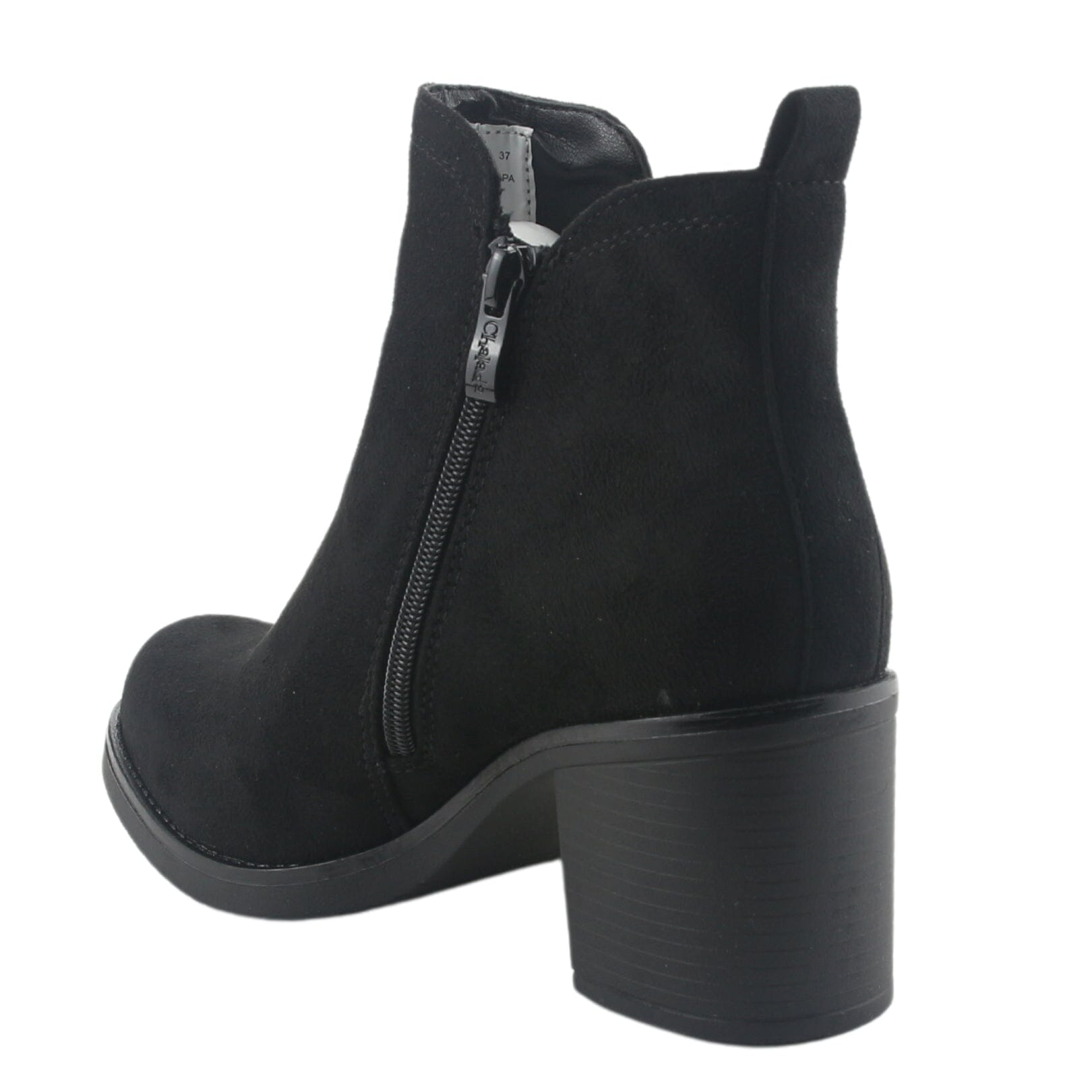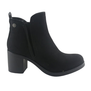 Botín Mujer Moda Prata-1 Color Negro de Capellada Sintético con Forro Textil y Planta de Goma su Taco mide 7 cm. Aprox., su Caña 11 cm aprox, Contorno de pantorrilla 28 cm aprox y su Tipo de Cierre es Cierre