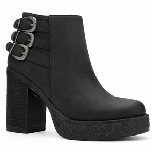 Botín Negro Mujer Ella, un calzado casual que combina estilo y comodidad con un toque sofisticado. Su capellada de eco cuero en color negro aporta un acabado elegante y versátil, mientras que las tres correas laterales con hebillas metálicas de estilo envejecido añaden un detalle distintivo y con personalidad.