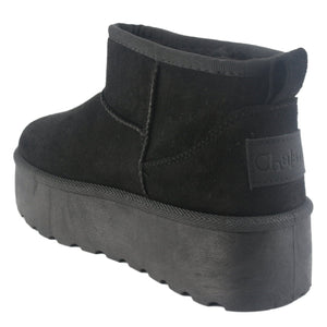 Botin Mujer Comfort Pinguih-1 Color Negro de Capellada Textil con Forro Textil y Planta de Goma su Plataforma mide 5 cm. Aprox. su Caña 10 cm aprox y su Contorno de pantorrilla 33 cm aprox"