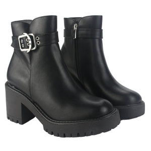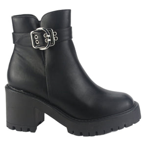 Botin Chalada Mujer Tere-2 Negro Casual de Capellada Sintetico con forro Sintetico y planta de Goma y su Taco mide 8 cm aprox, la altura de su caña es 11 cm aprox, el contorno de su bota es 27 cm aprox