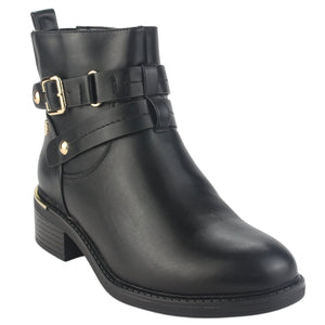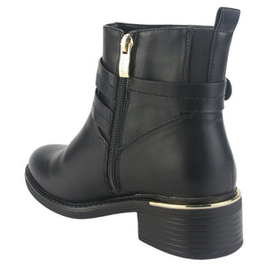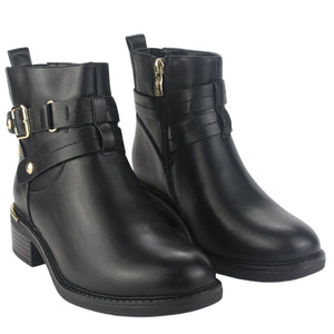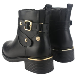 Botin Mujer Casual Trafa-20 Color Negro de Capellada Sintetico con Forro Textil y Planta de Goma, su Taco mide 4 cm prox, su Plataforma No aplica, su Caña 15 cm aprox, Contorno de pantorrilla 31 cm aprox y su Tipo de Cierre es Cierre