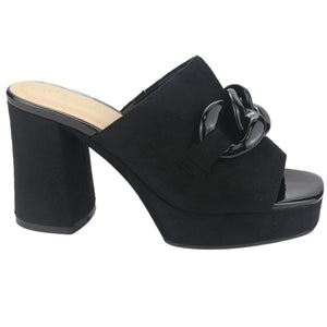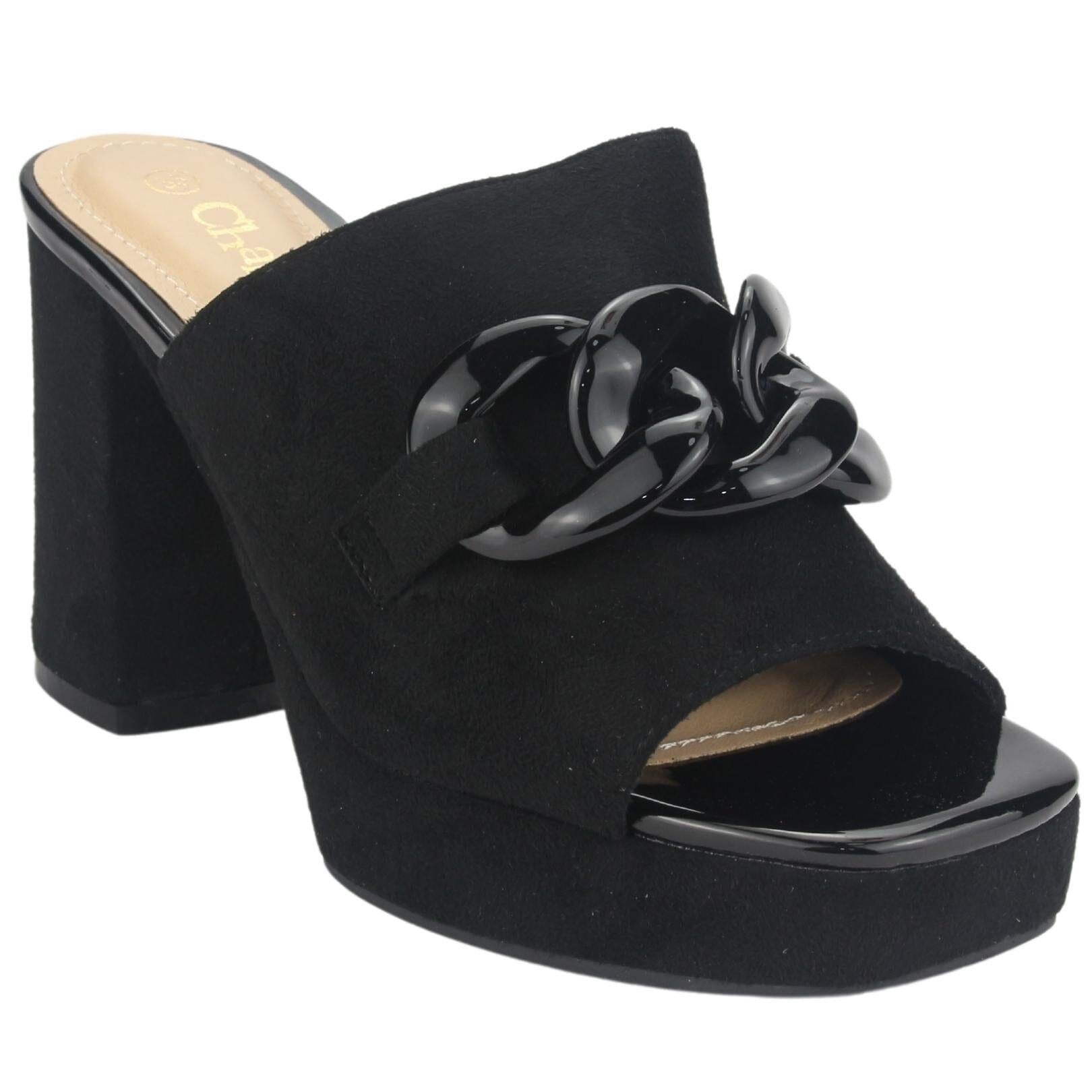 Sandalia Mujer Casual Sussi-2 Color Negro de Capellada Sintetico con Forro Sintetico y Planta de Goma, su Taco mide 10 cm aprox, su Plataforma 2 cm aprox