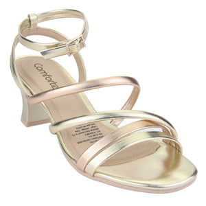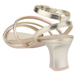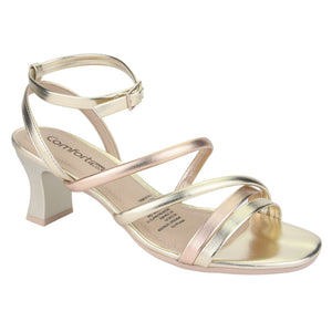 Sandalia Mujer Moda 2259403 Color Dorado de Capellada Sintético con Forro Sintético y Planta de Goma su Taco mide 5 cm. Aprox.