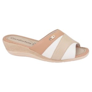 Sandalia Mujer Moda 2296401 Color Beige de Capellada Sintético con Forro Sintético y Planta de Goma su Taco mide 3 cm. Aprox.