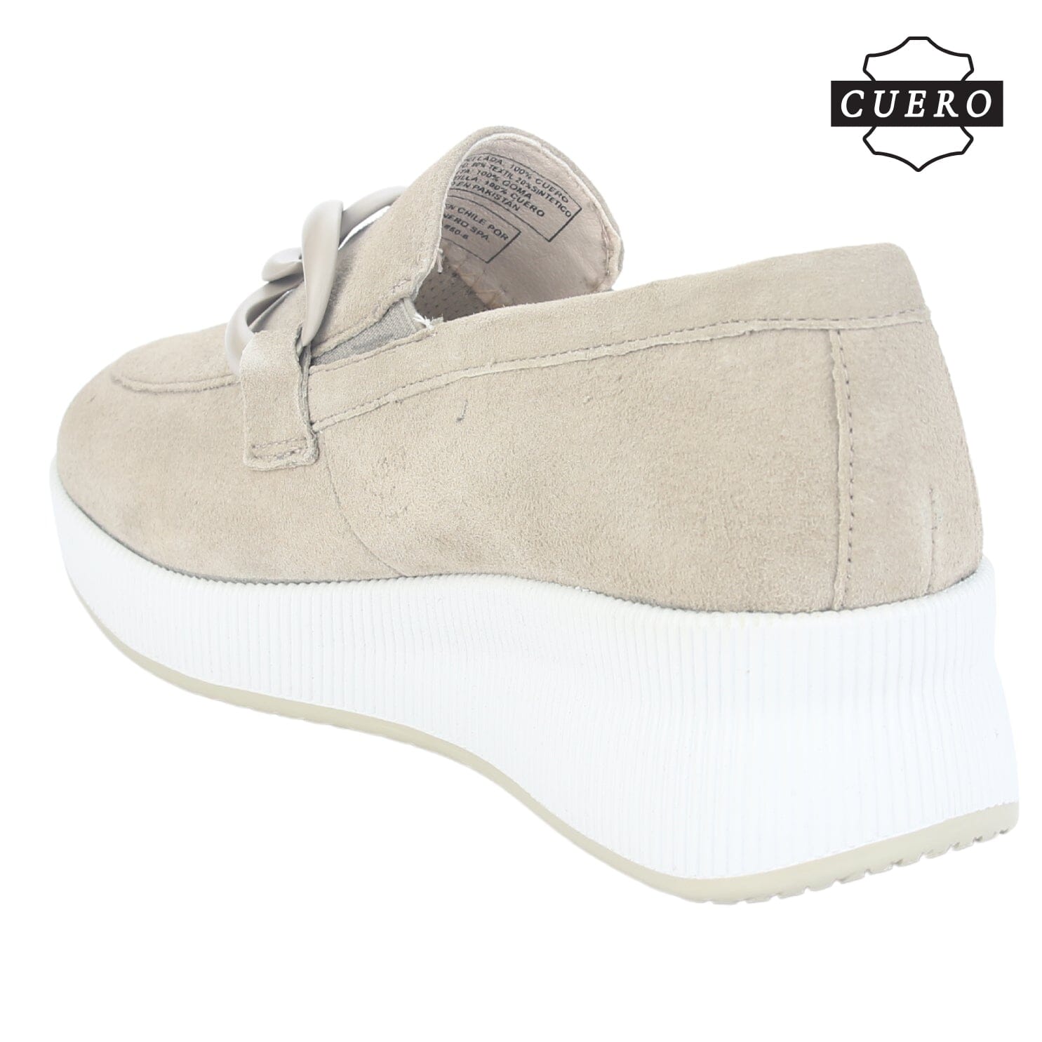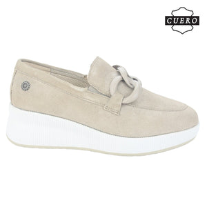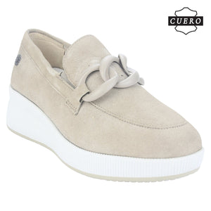 Mocasin de Cuero Chalada Mujer Ivana-1 Beige Casual de Capellada Sintetico con forro Sintetico y planta de Goma y su Taco mide 4 cm aprox