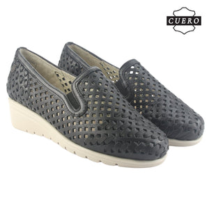 Zapato de Cuero Chalada Mujer Crose-1 Negro Casual de Capellada Sintetico con forro Sintetico y planta de Goma y su Taco mide 4 cm aprox