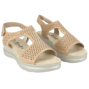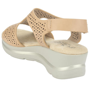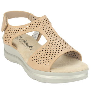 Sandalia Mujer Casual Fairly-3 Color Beige de Capellada Sintetico con Forro Sintetico y Planta de Goma, su Taco mide 5 cm aprox