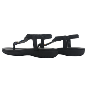 Sandalia de Mujer de color Negro con un estilo Casual, Marca Chalada el material de su capellada es sintetica, al igual que, su interior, su ajuste es elasticado, su capellada tiene un acabado texturizado, ademas su planta es plana