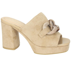 Sandalia Mujer Casual Sussi-2 Color Beige de Capellada Sintetico con Forro Sintetico y Planta de Goma, su Taco mide 10 cm aprox, su Plataforma 2 cm aprox