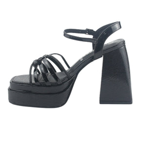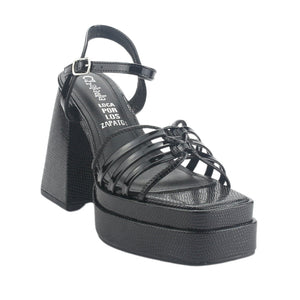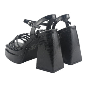Sandalia Mujer Casual Yaya-2 Color Negro de Capellada Sintetico con Forro Sintetico y Planta de Goma, su Taco mide 12 cm aprox, su Plataforma 4 cma aprox y su Tipo de Cierre es Hebilla