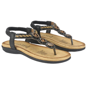 Sandalia Mujer Casual Clara-6 Color Negro de Capellada Sintetico con Forro Sintetico y Planta de Goma, y su Tipo de Cierre es Elasticado