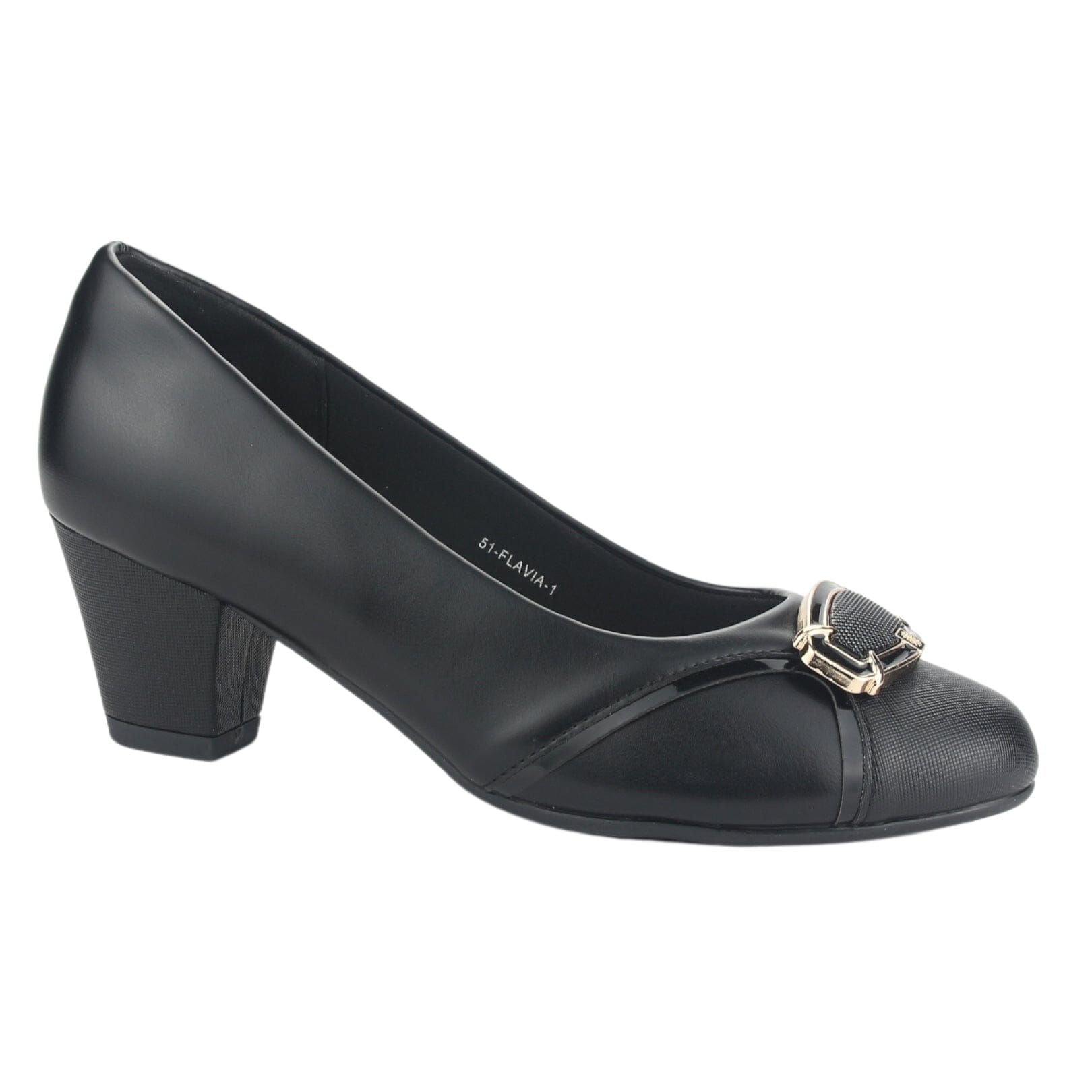 Zapato Mujer Casual Flavia-1 Color Negro de Capellada Sintetico con Forro Textil y Planta de Goma, su Taco mide 6 cm aprox