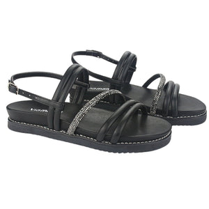 Sandalia Mujer Casual 23-10702 Color Negro de Capellada Sintetico con Forro Sintetico y Planta de Goma y su Tipo de Cierre es Hebilla