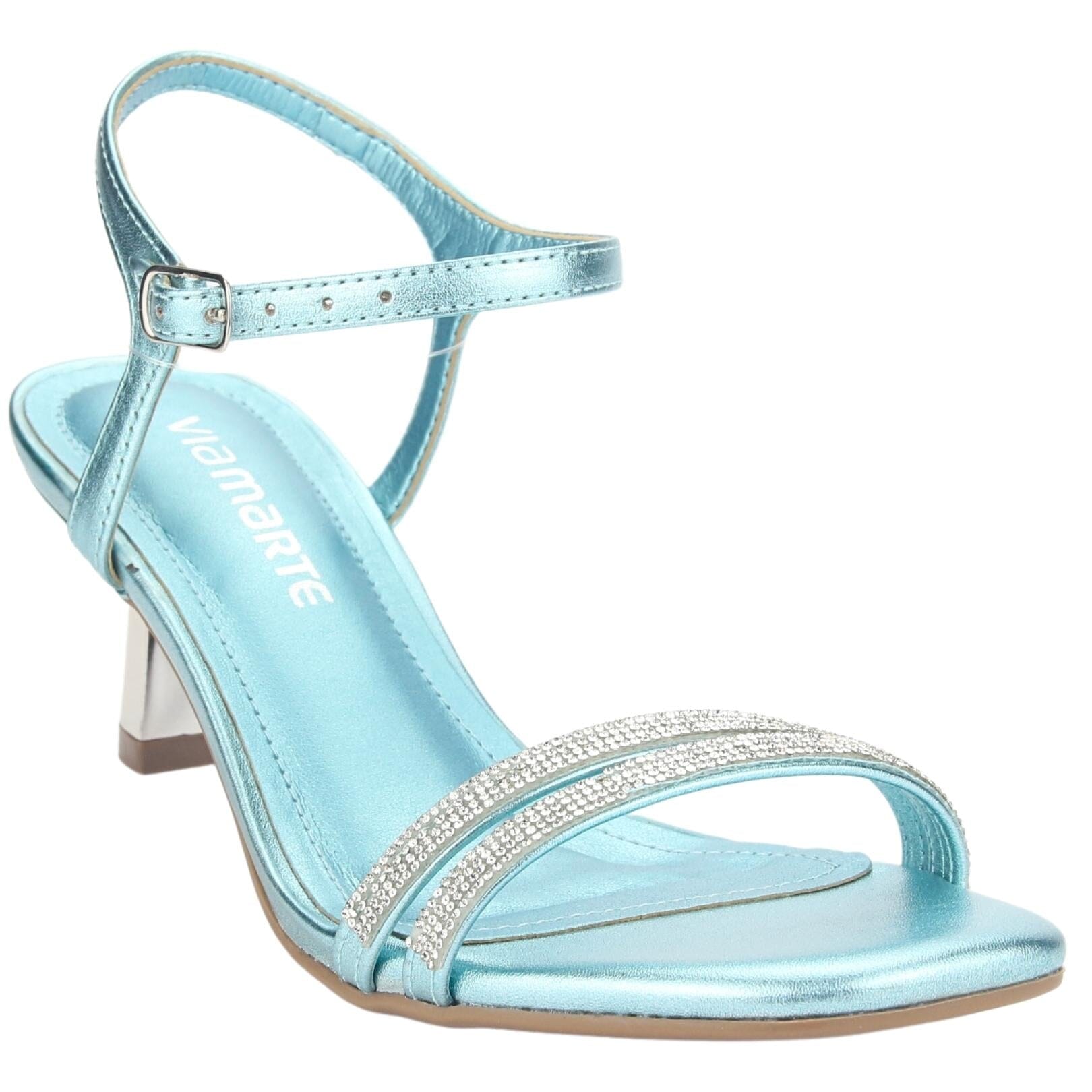 Sandalia Mujer Casual 23-18504 Color Azul Marino de Capellada Sintetico con Forro Sintetico y Planta de Goma, su Taco mide 4 cm aprox y su Tipo de Cierre es Hebilla
