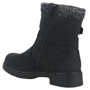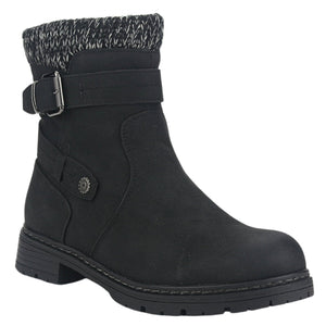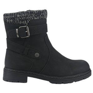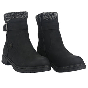 Botin Mujer Casual Andy-1 Color Negro de Capellada Sintetico con Forro Textil y Planta de Goma, su Taco mide 3 cm aprox, su Plataforma No aplica, su Caña 16 cm aprox, Contorno de pantorrilla 32 cm aprox y su Tipo de Cierre es Cierre