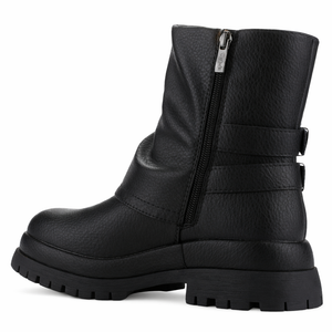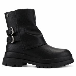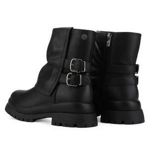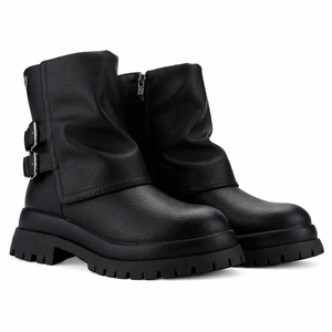 Botin Negro Mujer Krep se caracteriza por tener un estilo Casual, el material de su capellada es sintetica, y el de su interior es textil, ademas su planta es plana, otra de sus medidas es que su caña mide 18cm y ademas el contorno de su pantorrilla es de 30cm