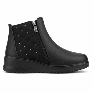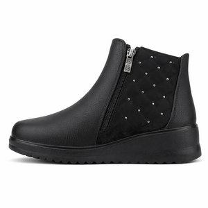 Botín Negro Mujer Rayo, un botín casual de estilo moderno diseñado para acompañar tus outfits durante la temporada de invierno. Su capellada en ecocuero graneado aporta textura y resistencia, mientras que su diseño de caña baja ofrece un calce cómodo y versátil que se adapta fácilmente a distintos estilos de uso diario.