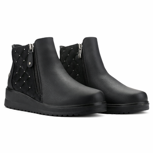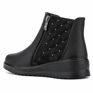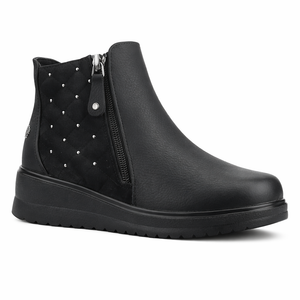 El Botín Negro Mujer Rayo es ideal si buscas botines mujer cómodos para invierno. Su capellada en ecocuero graneado, cierre lateral práctico y detalles de tachas plateadas lo convierten en una opción moderna y fácil de combinar con distintos outfits diarios.