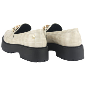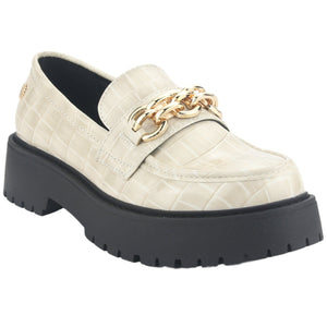 Mocasin Mujer Casual Lenin-1 Color Beige de Capellada Sintetico con Forro Textil y Planta de Goma, su Taco mide No tiene, su Plataforma 4 cm aprox, su Caña 6 cm aprox, Contorno de pantorrilla No tiene y su Tipo de Cierre es No tiene