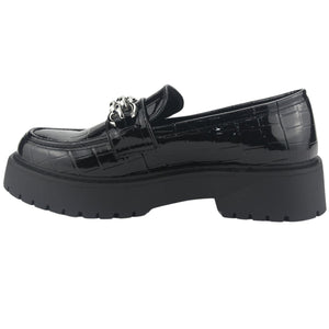 Mocasin Mujer Casual Lenin-1 Color Negro de Capellada Sintetico con Forro Textil y Planta de Goma, su Taco mide No tiene, su Plataforma 4 cm aprox, su Caña 6 cm aprox, Contorno de pantorrilla No tiene y su Tipo de Cierre es No tiene