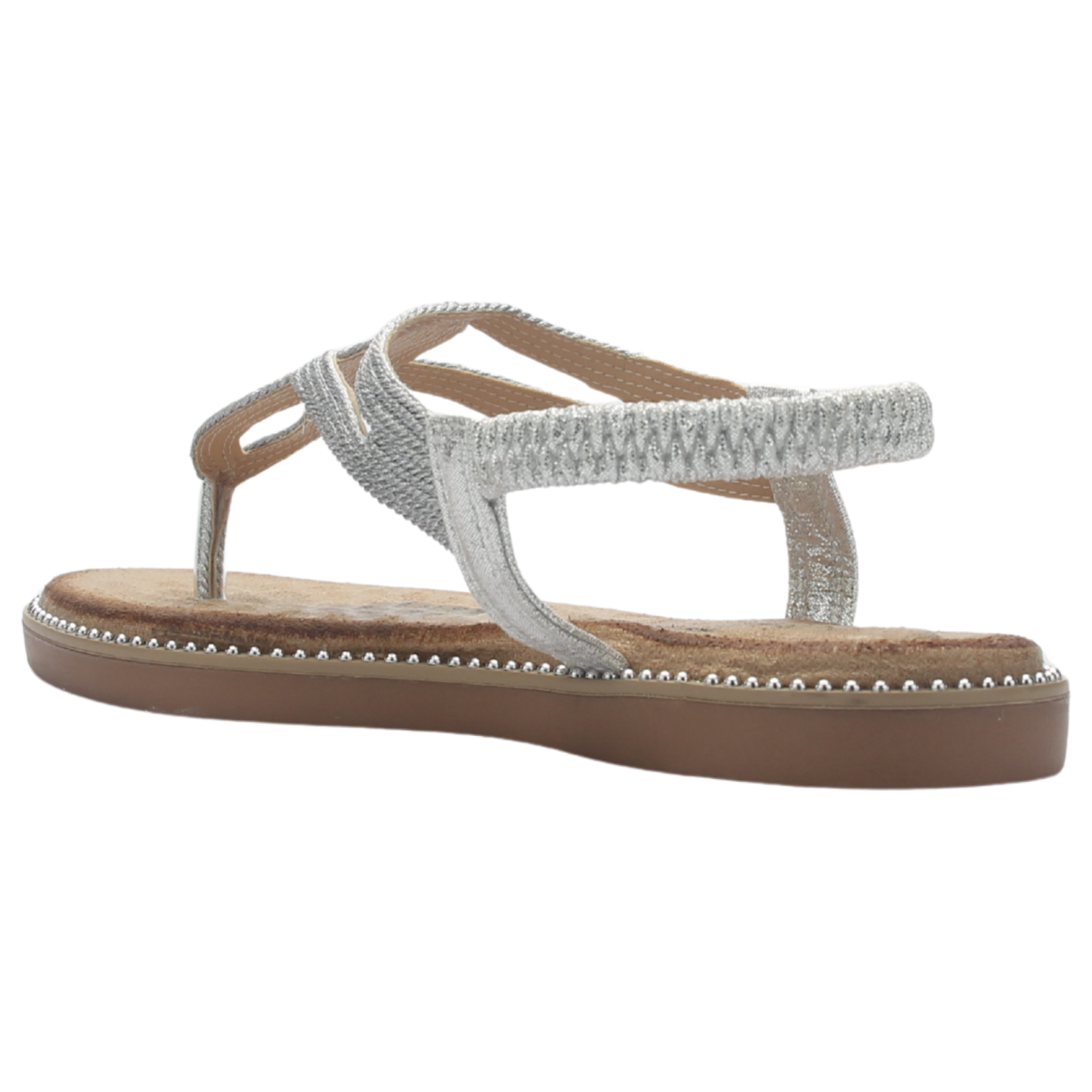 Sandalia de Mujer de color Plateado con un estilo Casual, Marca Chalada el material de su capellada es textil, y el de su interior es sintetico, su ajuste es elasticado, su capellada tiene un acabado tejido, ademas su planta es plana