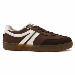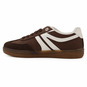 Sneaker Zapatilla Café Mujer Aru, un calzado urbano con un encanto retro y vintage que evoca la estética clásica de las zapatillas. Su color café y su diseño relajado aportan un estilo único que combina con looks casuales y modernos, ideal para quienes desean una sneaker con personalidad para complementar sus outfits diarios.