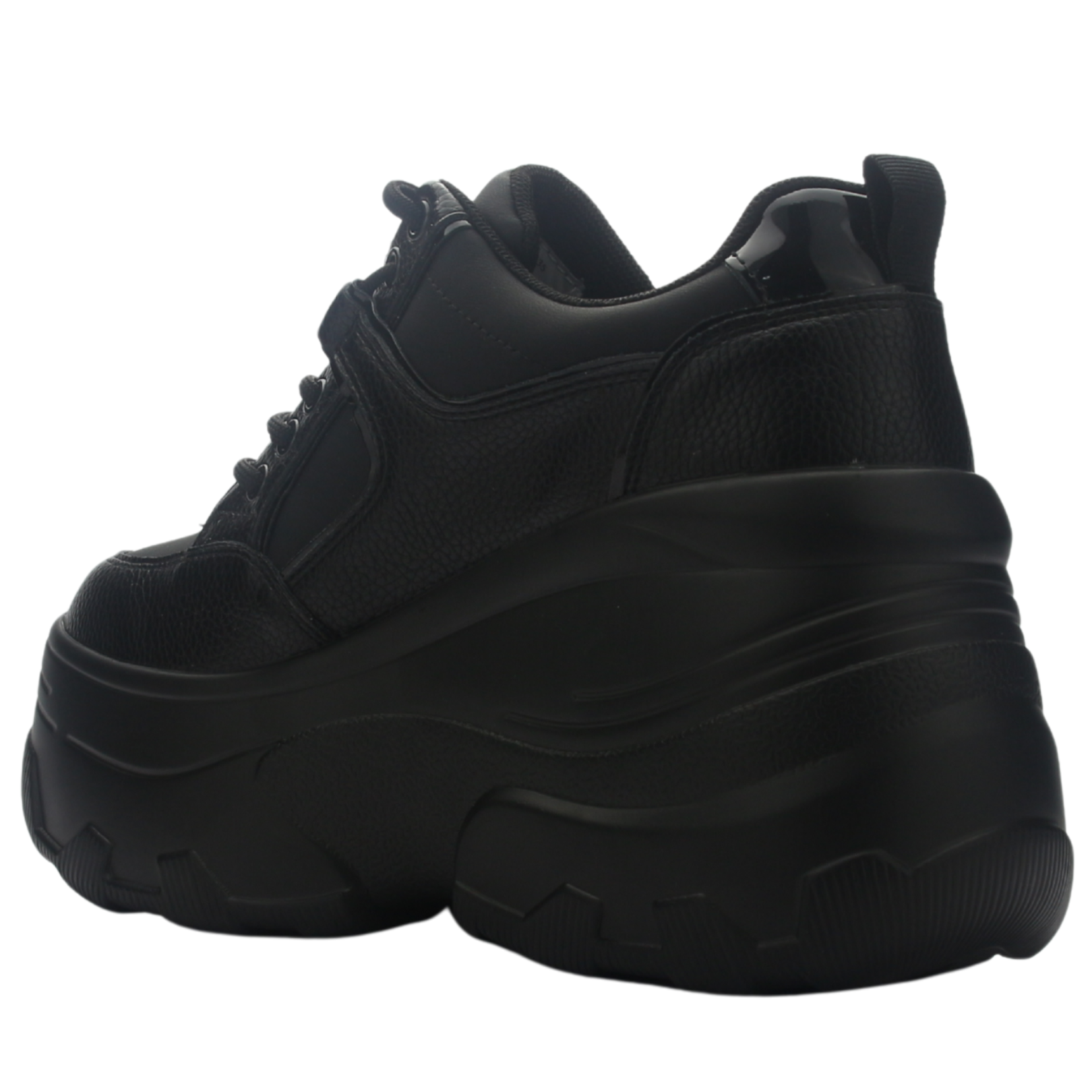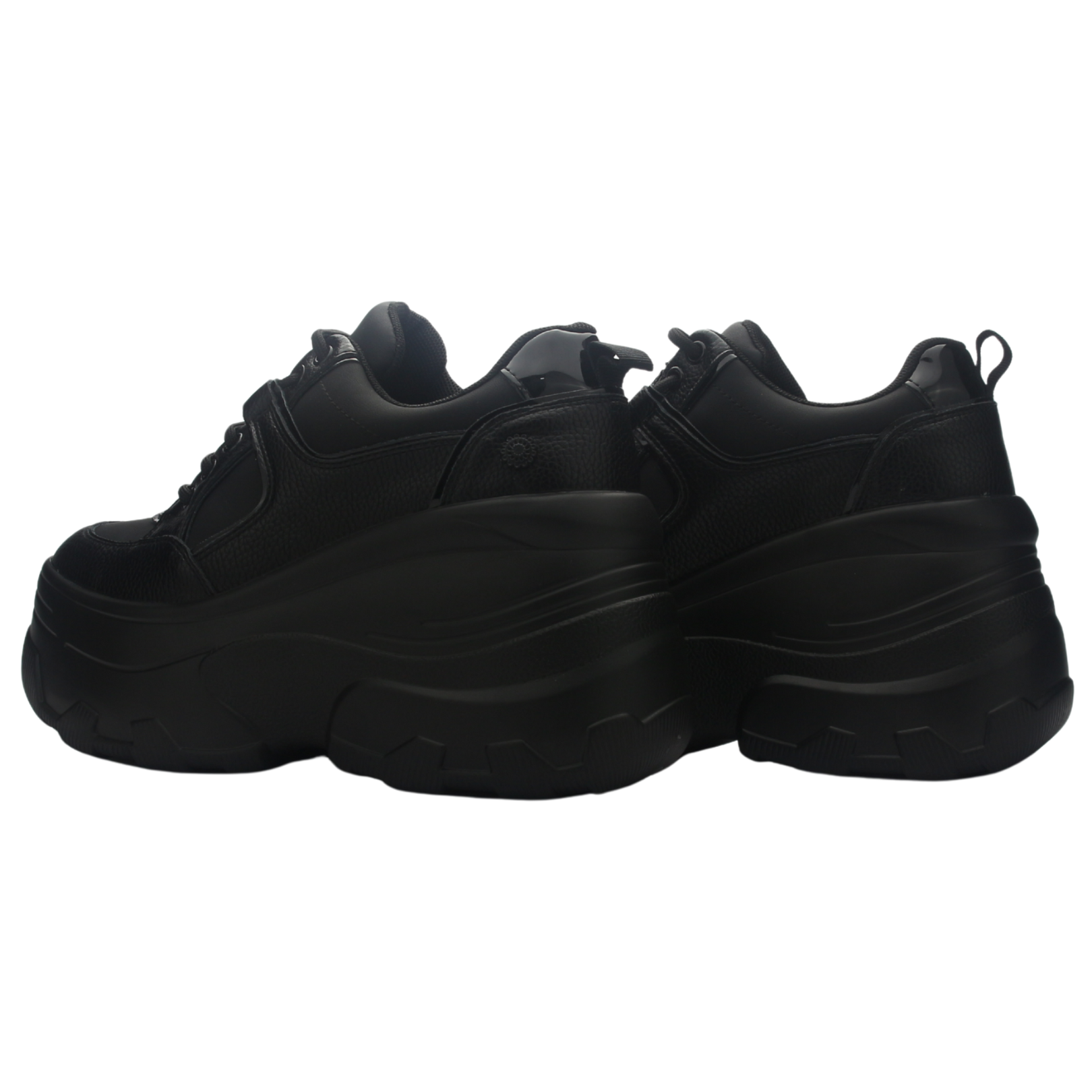 Zapatilla de Mujer de color Negro con un estilo Urbano, Marca Chalada el material de su capellada es sintetica, y el de su interior es textil, su ajuste es con cordones, su color tiene un acabado matte, ademas la altura de su plataforma es de 10 cm