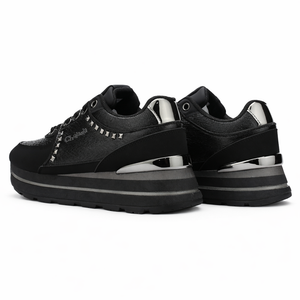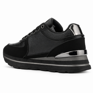 Zapatilla Negro Mujer Orbit se caracteriza por tener un estilo Urbano, el material de su capellada es sintetica, y el de su interior es textil, ademas la altura de su plataforma es de 6 cm, su caña es baja y ademas el contorno de su pantorrilla es estandar