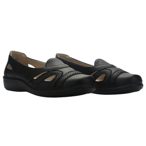 Zapato de Mujer de color Negro con un estilo Casual, Marca Chalada el material de su capellada es sintetica, y el de su interior es textil, su ajuste es elasticado, su capellada tiene un acabado brillante, ademas su planta es plana